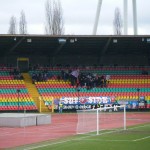 Bericht: Türkiyemspor kämpfte aufopferungsvoll und als sich beide Seiten bereits mit dem torlosen Remis zufrieden zu geben schienen, fiel doch noch das 0:1 für die Holsteiner. Trainer Falko Götz und Co-Trainer Andreas Thom kamen somit dem Aufstiegstraum etwas näher, während der Gastgeber weiter im Abstiegskampf festhängt. Bemerkenswert war die hohe Anzahl der Polizei-Einsatzkräfte, da nach ihren Angaben mit üblen Jungs aus Kiel gerechnet wurde. Diese kamen dann doch nicht, trotzdem war der Gästeblock verhältnismäßig ganz gut gefüllt und etwa 20 Leute versuchten sich im Dauersupport. Auf Türkiyem-Seite sorgten zwei etwa 40jährige Türken für Stimmung. Einer mit Trommel, sein Partner mit einer bei zunehmender Dauer nicht gerade wenig nervenden Schlangenbeschwörer-Tröte. Am Anfang ganz lustig, im weiteren Verlauf die Nerven sehr strapazierend.