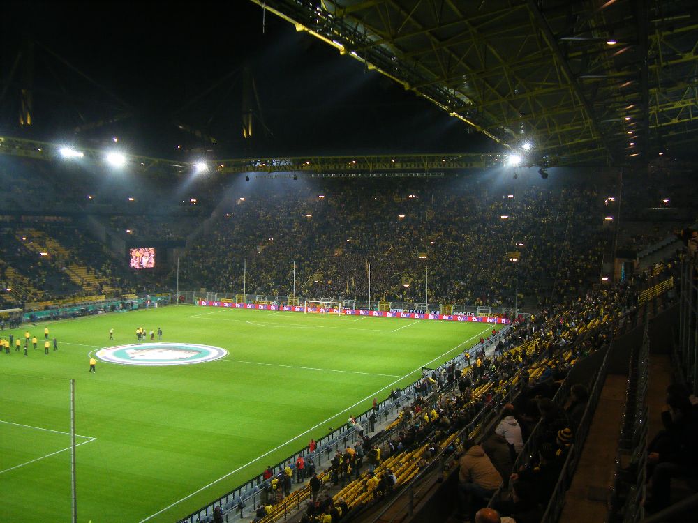 Bericht: Mit dem guten Schalker Freund ging es ins schwarz-gelb getauchte Westfalenstadion, wodurch der Knappe wahrscheinlich noch immer unter Augenreizungen und Schüttelattacken leidet. Die Riesenschüssel wartete mit DFB-Pokal-Zweitrundenzuschauerrekord auf, woran die etwa 10.000 mitgereisten Dynamos großen Anteil hatten. Wie fast immer gilt: wo Dresden spielt ist was los. Das Spiel wurde aufgrund kleinerer Scharmützel vor dem Stadion später begonnen, im Stadion gab es zu Beginn beider Halbzeiten nett anzusehende Pyroshows und kurz vor Schluss wurde das Spiel unterbrochen, weil einige Dresdner aus dem Gästeblock Richtung Haupttribüne stürmten. Die Stimmung war gut, was auch daran lag, dass sich der Zweitligist auf dem Feld teuer verkaufte und so das Spiel nicht allzu früh zu Gunsten der haushohen Favoriten entschieden war. Die Südtribüne ist beeindruckend, wurde aber nur selten tatsächlich so ohrenbetäubend laut, wie man es von ihr auf den ersten Blick sofort erwarten würde. Ein abwechslungsreicher Fußballabend…