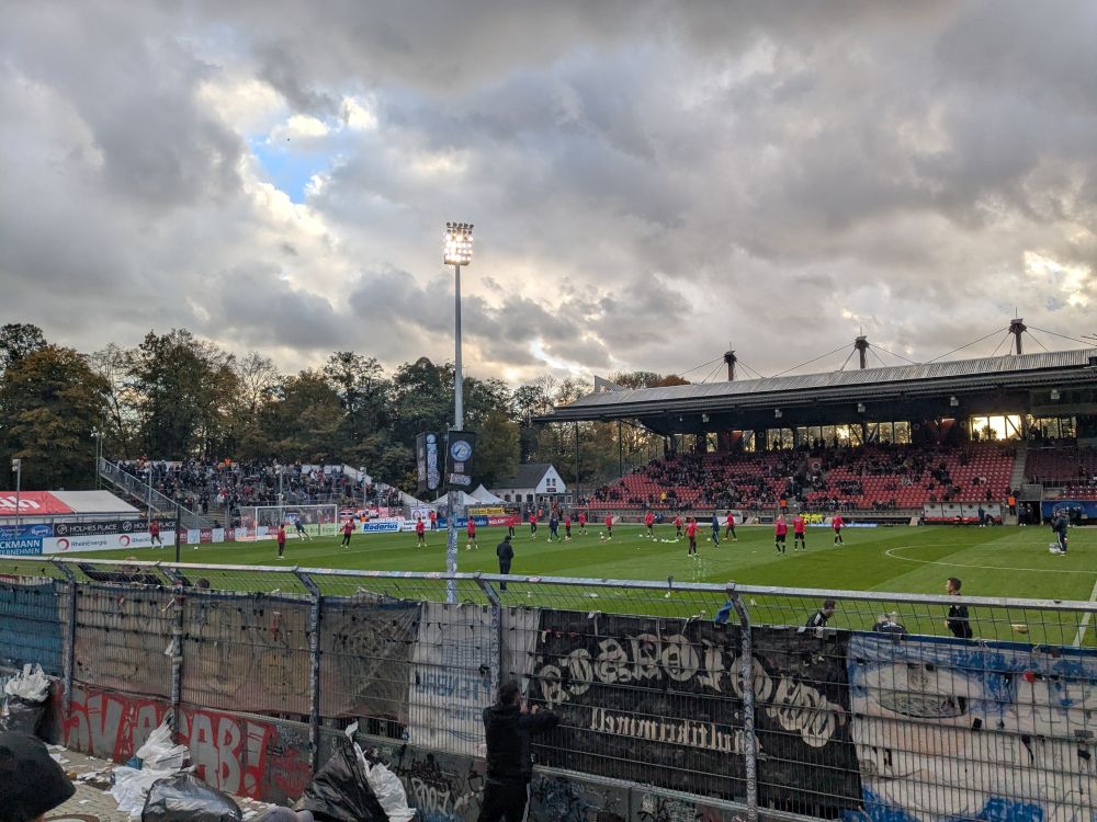 Bericht: Am späten Nachmittag eines Sonntags wurde im Sportpark Höhenberg die Drittligapartie Viktoria Köln gegen Hansa Rostock angepfiffen. Damit empfing ein zuhause ungeschlagenes Team eine auswärts noch sieglose Elf und wie sollte es anders sein: beide Serien rissen an diesem Abend mit dem verdienten Sieg für HRO. Endlich konnte mal der dominante Heimspielspirit in die Fremde überführt werden und vielleicht bedeutet dieser nicht unbedingt eingeplante Sieg den Beginn einer Serie. Ansonsten war es wie immer sehr entspannt bei Viktoria, das sich nicht von Zuschauermassen erdrücken lassen muss, weshalb die Aufforderung des Stadionsprechers nach Spielende doch erheiternd daherkam: „Sichert Euch noch schnell Tickets für den Flutlichtkracher gegen Ingolstadt“. Bevor sie vergriffen sind. Viktoria Köln gegen FC Ingolstadt. Wer kennt ihn nicht, den El Clásico der 3. Liga.