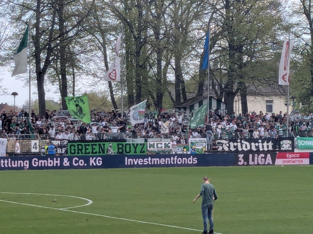 Bericht: Mittendrin im Aufstiegsrennen befindet sich der FC Hansa, da darf der bereits abgestiegene Gastgeber eigentlich kein Stolperstein sein, doch eben jene sich selbst die Bezeichnung Schnüdel gebende Mannschaft aus Franken um Trainer und Ex-US-Nationalspieler Jermaine Jones trotzte der Kogge ein völlig verdientes Unentschieden ab. Enttäuschung pur auf Seiten der Gäste, war doch alles angerichtet für ein Fußballfest Richtung Aufstieg: das feine Oldschool-Stadion, das die meisten der Hansafans noch nicht von innen gesehen haben dürften, lockte auch viele alte Weggefährten nochmal auf die Straßen und Schienen und mit einem rauchigen Intro von den Rängen wurde das Team in die Schlacht geschickt. Die Heimszene fabrizierte ähnlich Ansehnliches in kleinerem Rahmen, ließ sich von der allein zahlenmäßigen Übermacht der Gästefans durchweg nicht unterdrücken und zog ihre Sache im Block sehr respektabel durch – alles Gute für den Neuanfang in der Regionalliga!